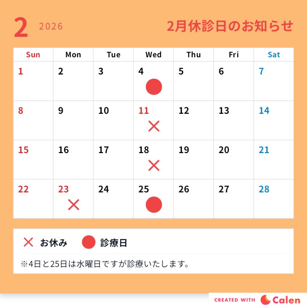 🌼2月休診日のお知らせ🌼